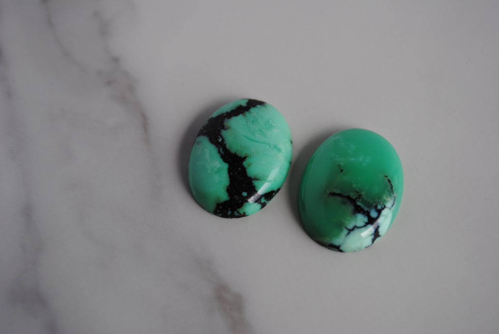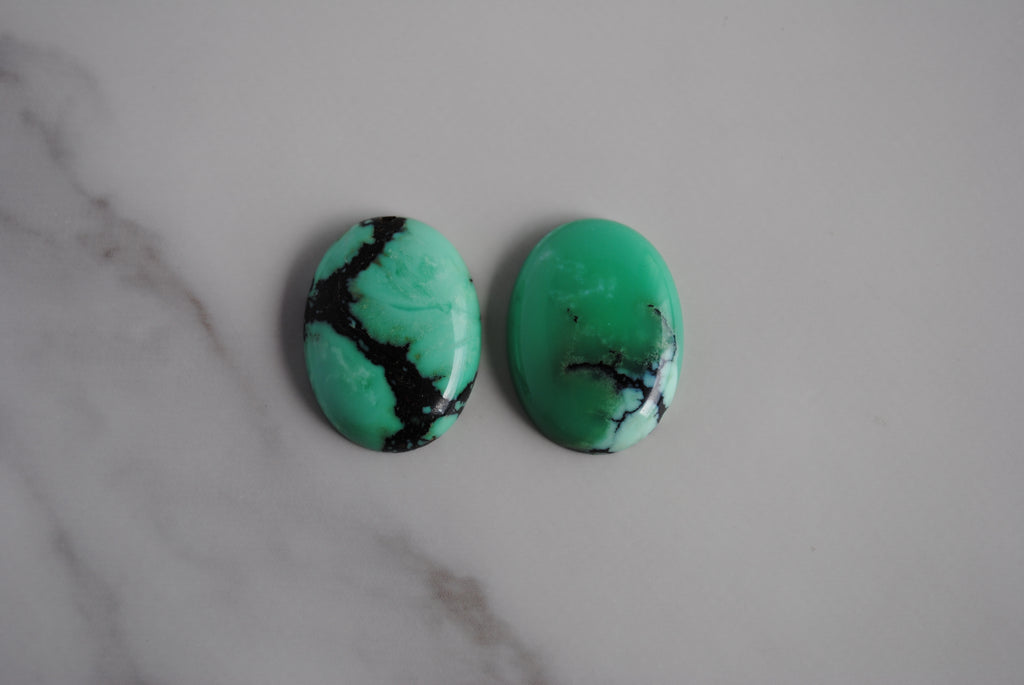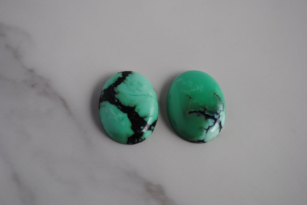 New Lander chalcosiderite cabochons. Not backed. Approximately 22x30mm. Please note one of the stone has pitting and a surface fracture line. Final sale. Thank you!
