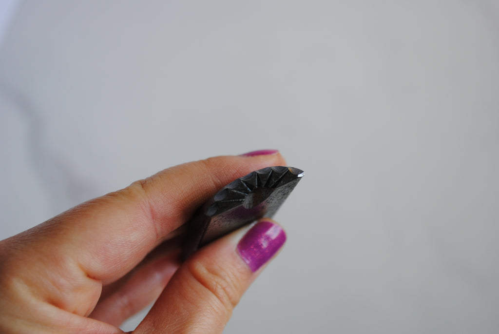 One metal stamp, the width of the stamp is approx. 1 inch. Please note that one end of the stamp is damaged, the pattern is slightly smushed (see second photo for the area circled in red). Final sale. Thank you!