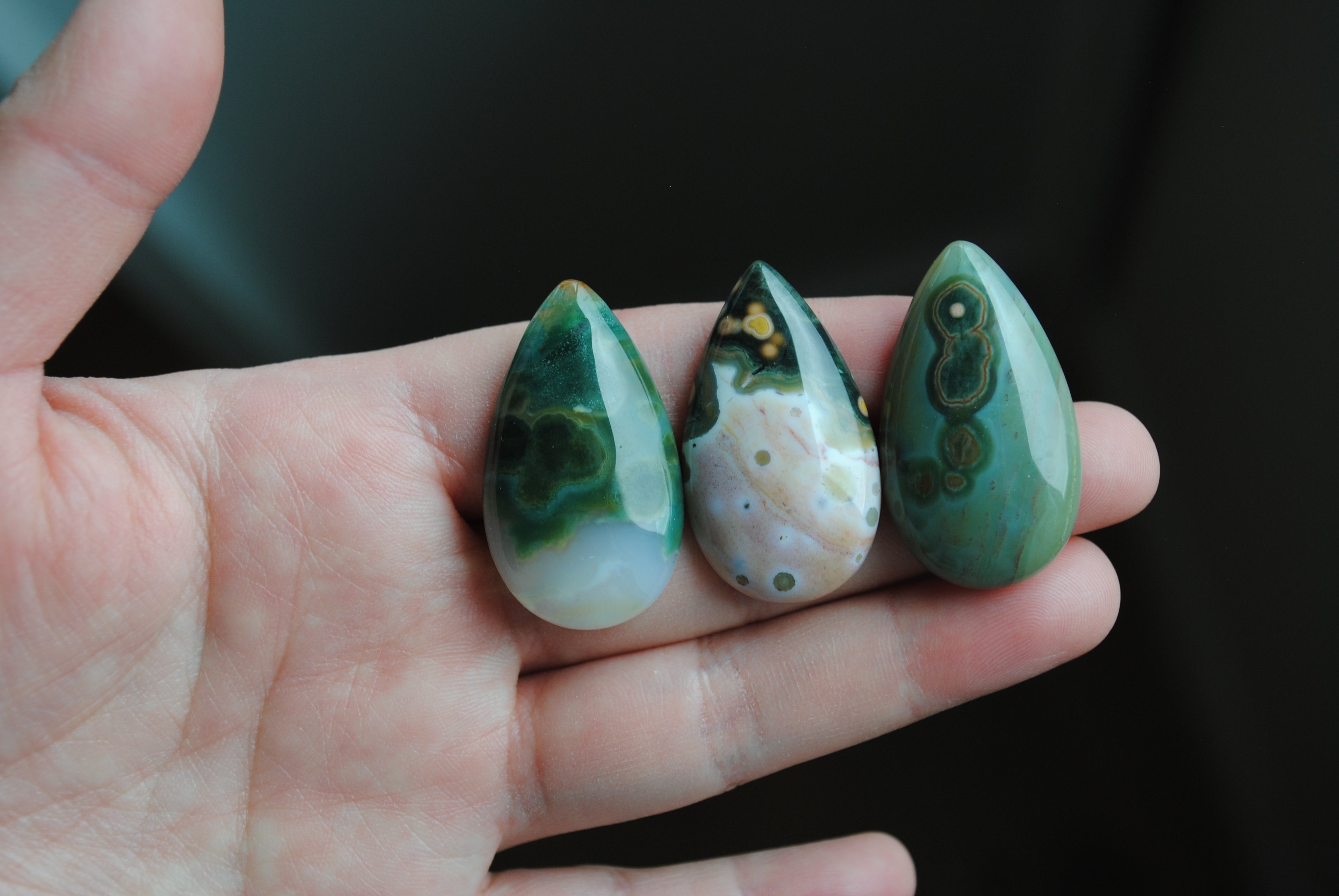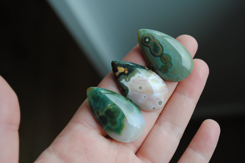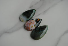 Ocean Jasper cabochons. Approximately 35x20mm. Some slight pitting/fracture lines. Final sale. Thank you!