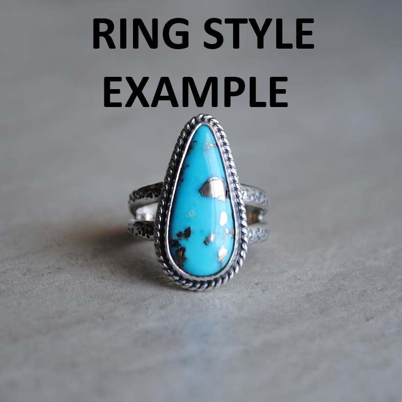 This listing is for the following custom sterling silver ring using the stone in the first photo in the same style as the example photo.