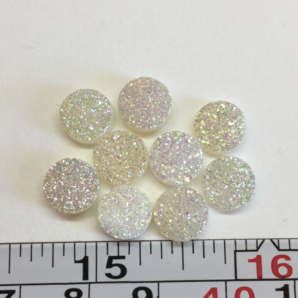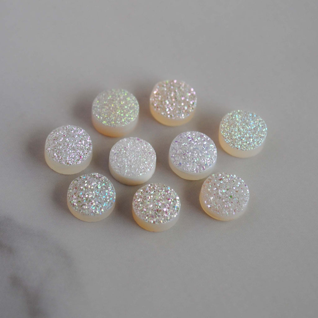 Druzy cabochons. 8mm rounds. The stones are coated with titanium to bring out a consistent iridescence (from Rio Grande). Final sale. Thank you!